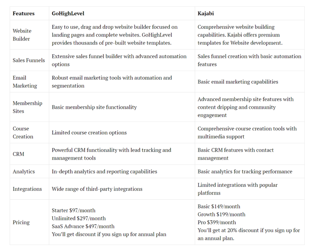 Continue reading to discover which solution – GoHighLevel or Kajabi – offers the best fit for your goals and business requirements.